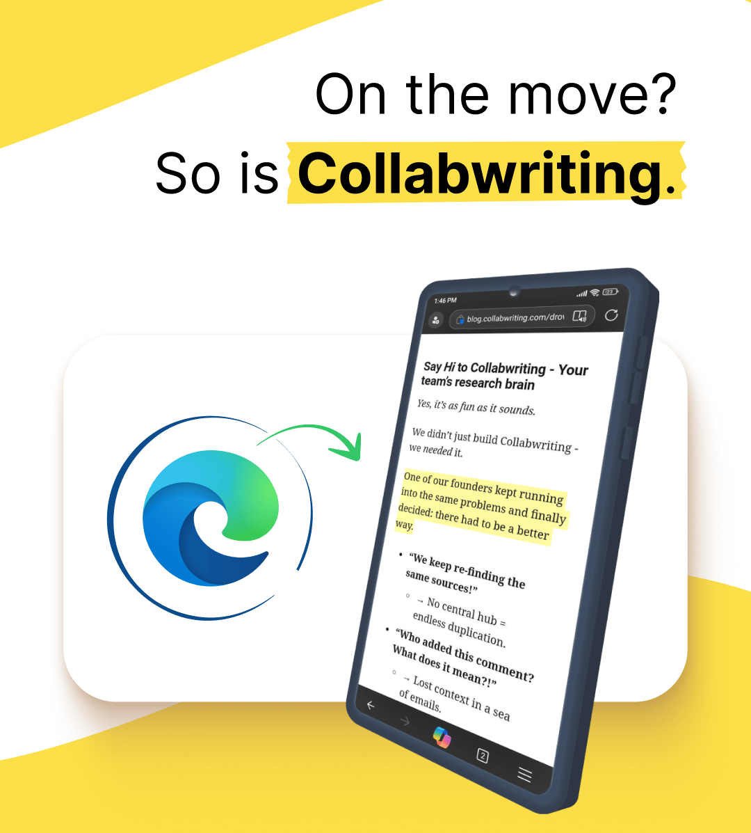 Microsoft Edge has rolled out a BETA version of extensions for Android, and Collabwriting is among the first 25 to make the cut. 🎉