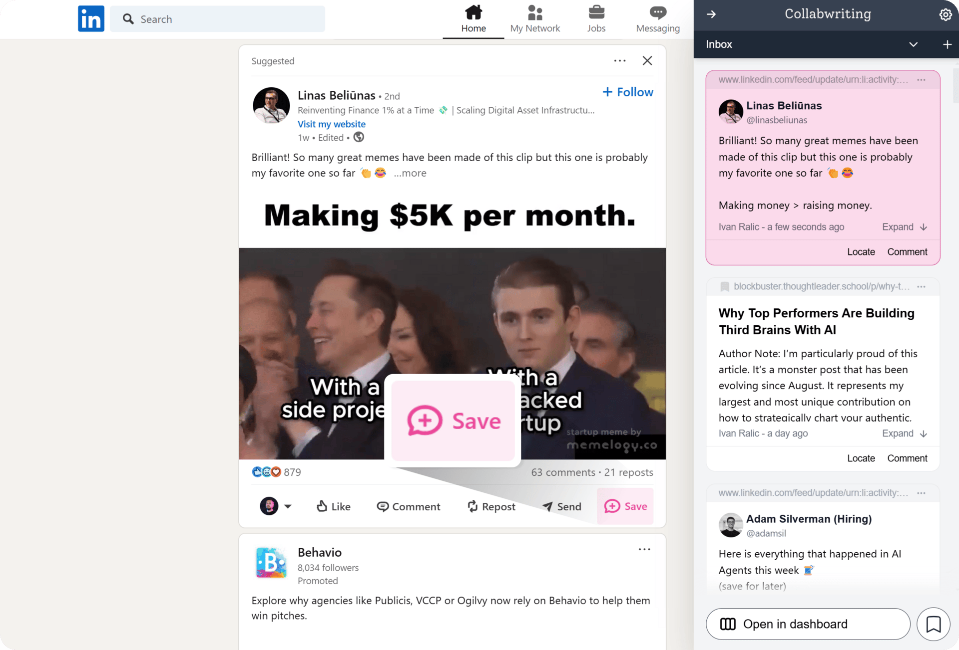 That’s why, when we built the Save+ button for platforms like LinkedIn, Reddit, Quora, or X, we didn’t stop at just saving.