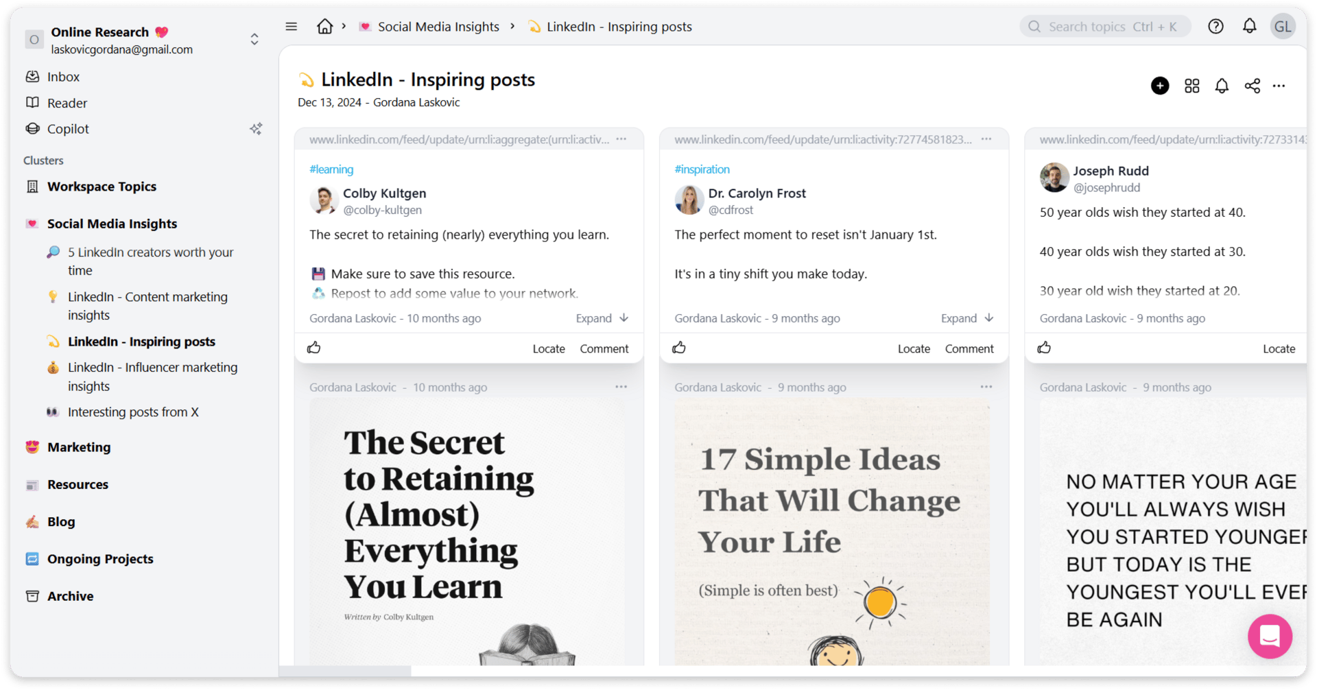 I made a quick walkthrough video showing how I use Collabwriting to save and organize insights I find, whether on web pages, PDFs, or social media platforms like LinkedIn and YouTube, and collaborate with my team.